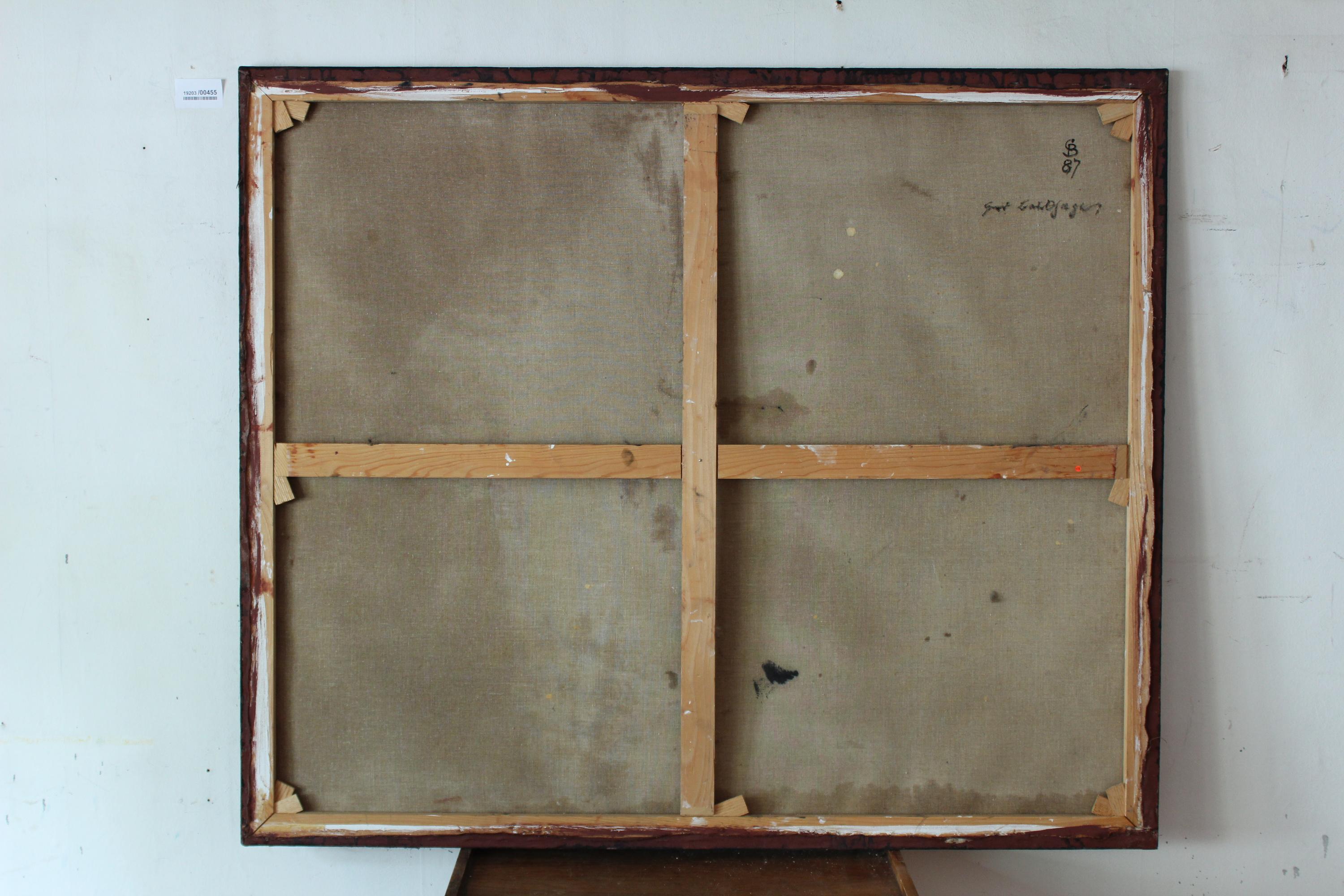 tempera, sand and oil on canvas