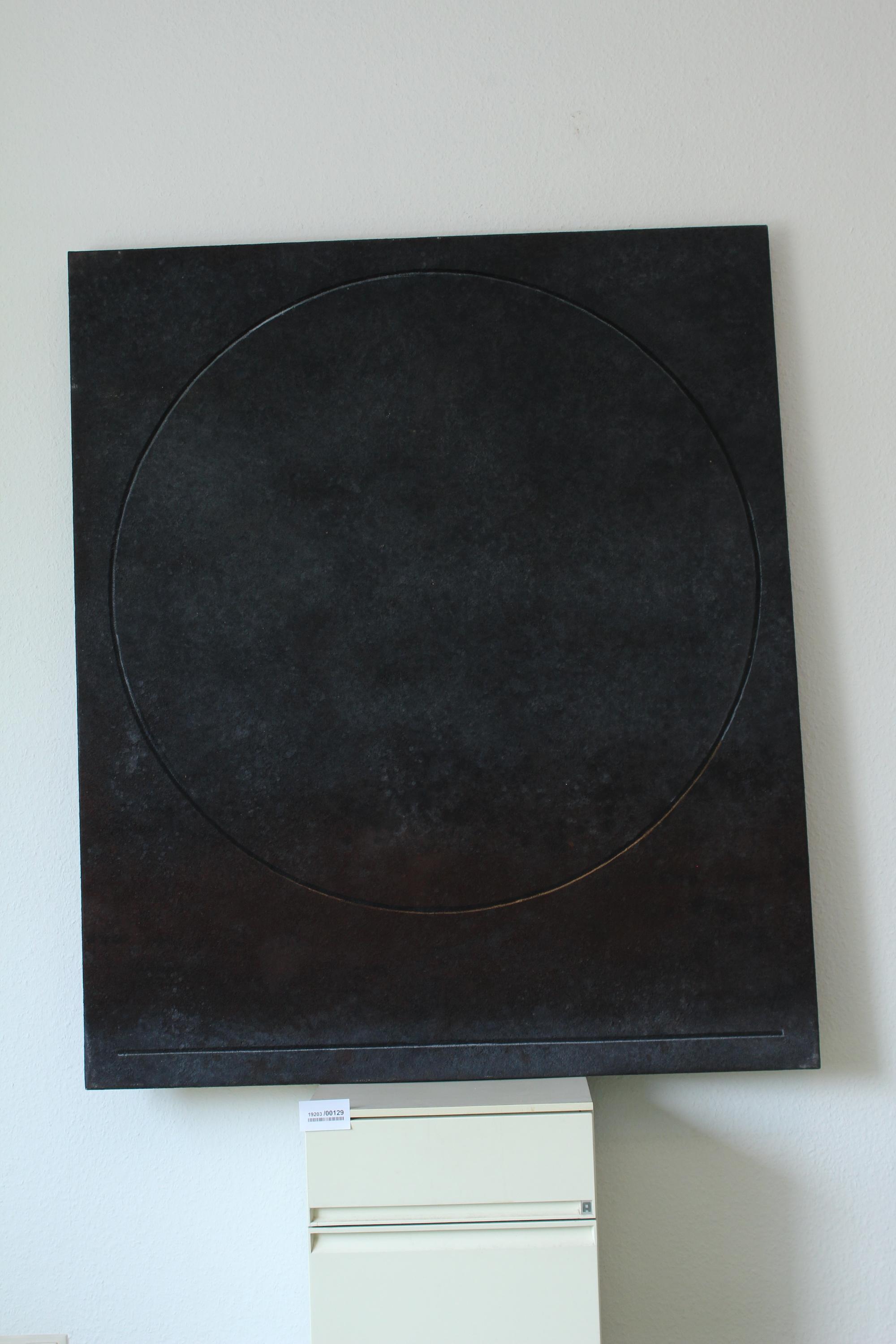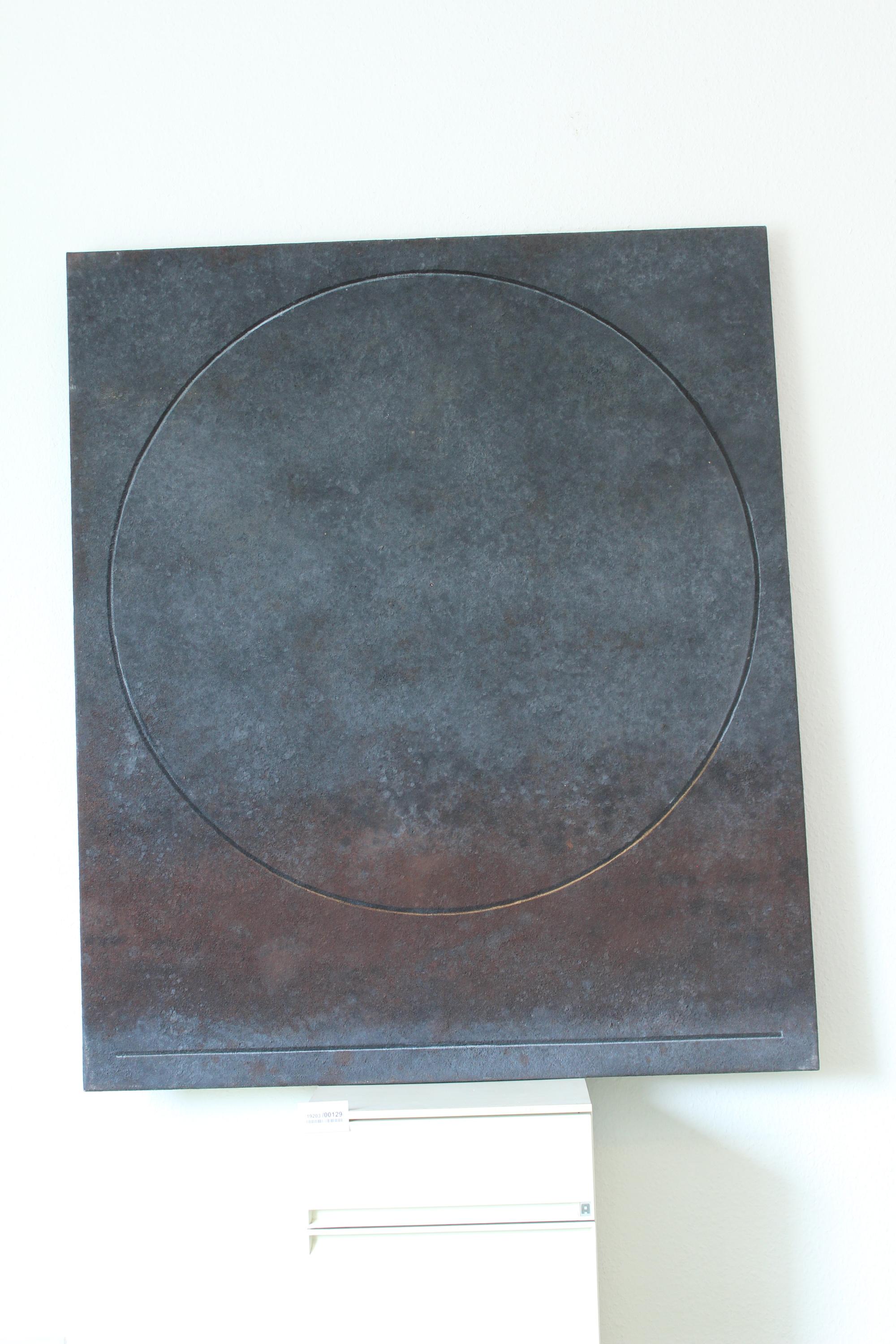 tempera, sand and oil on canvas