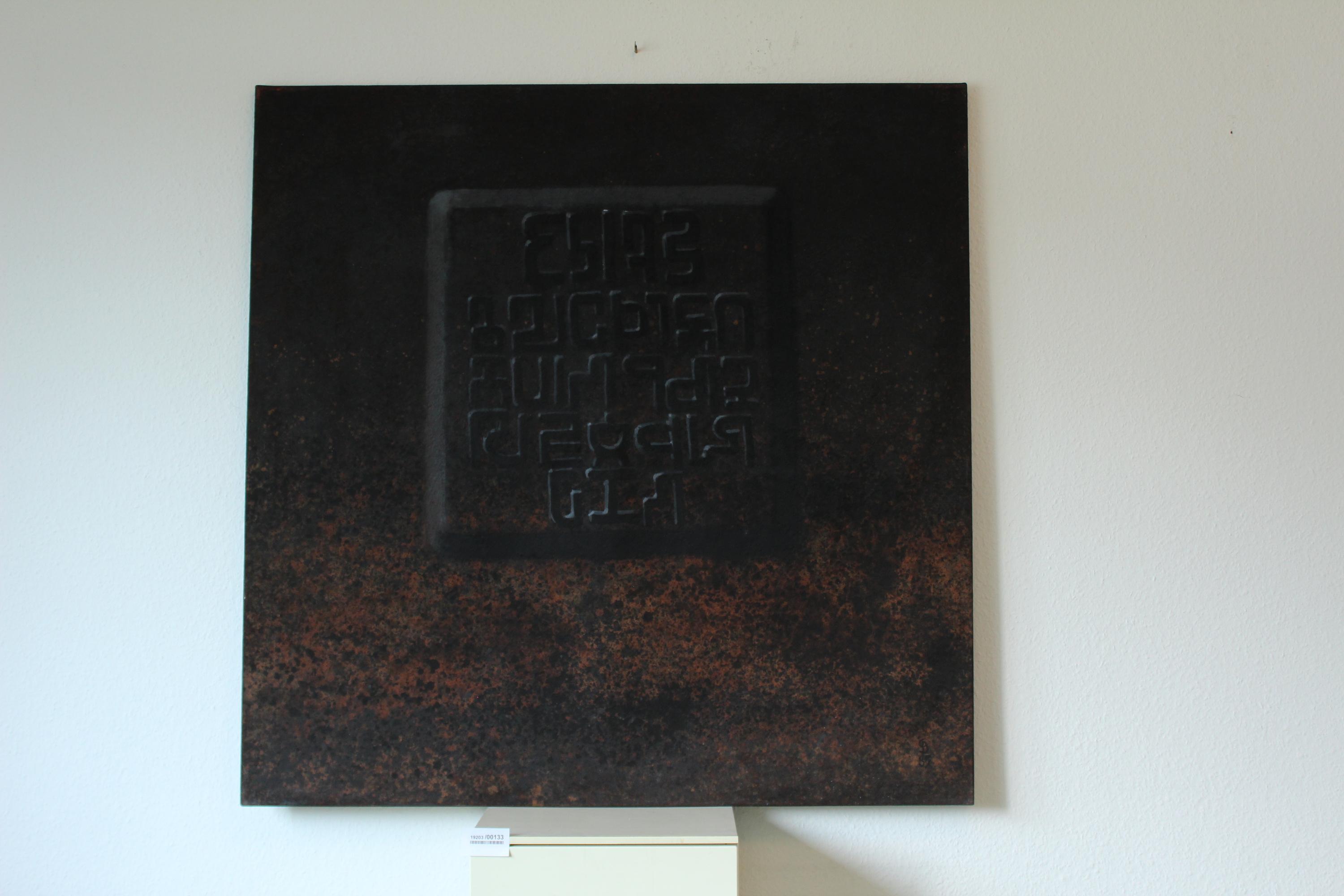 tempera, sand and oil on canvas