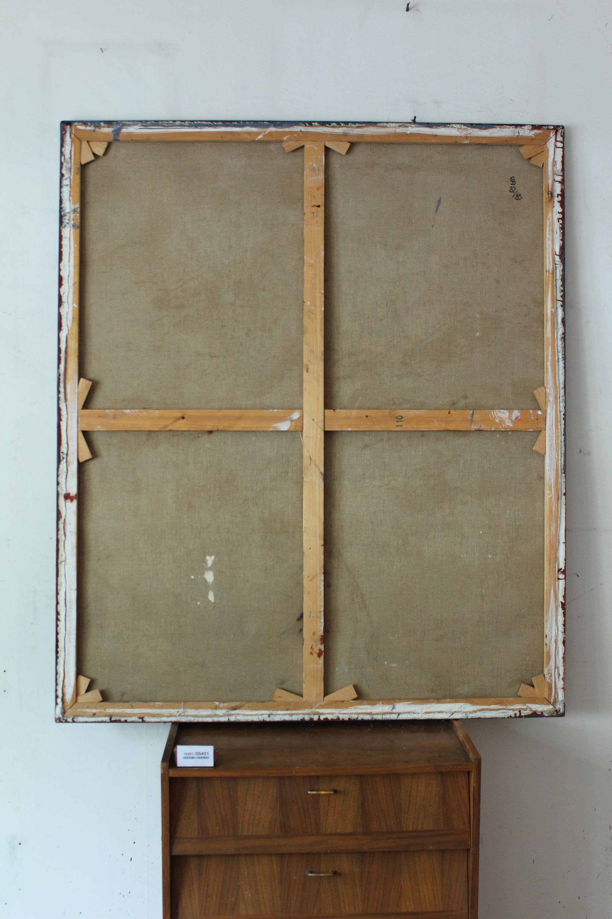 Tempera, Sand und Öl auf Leinwand