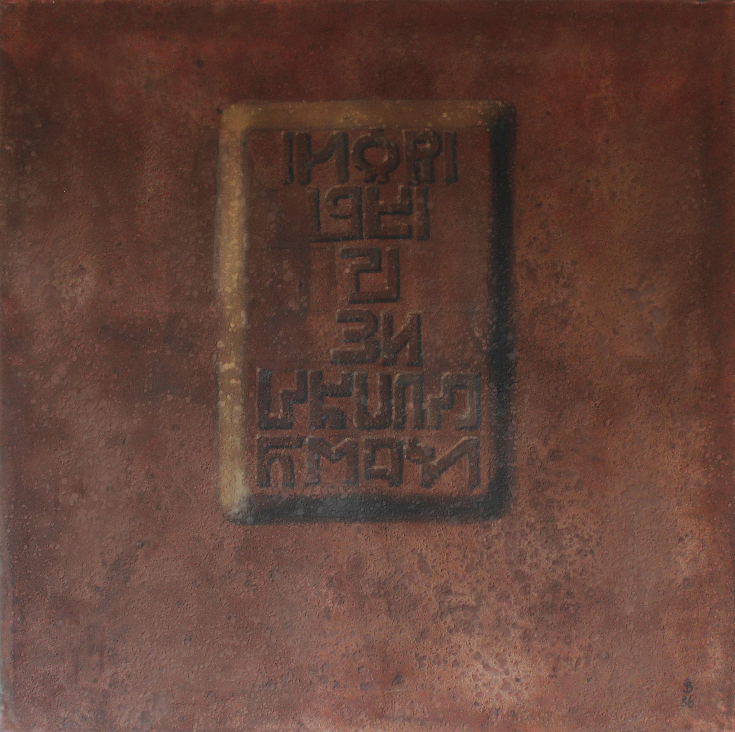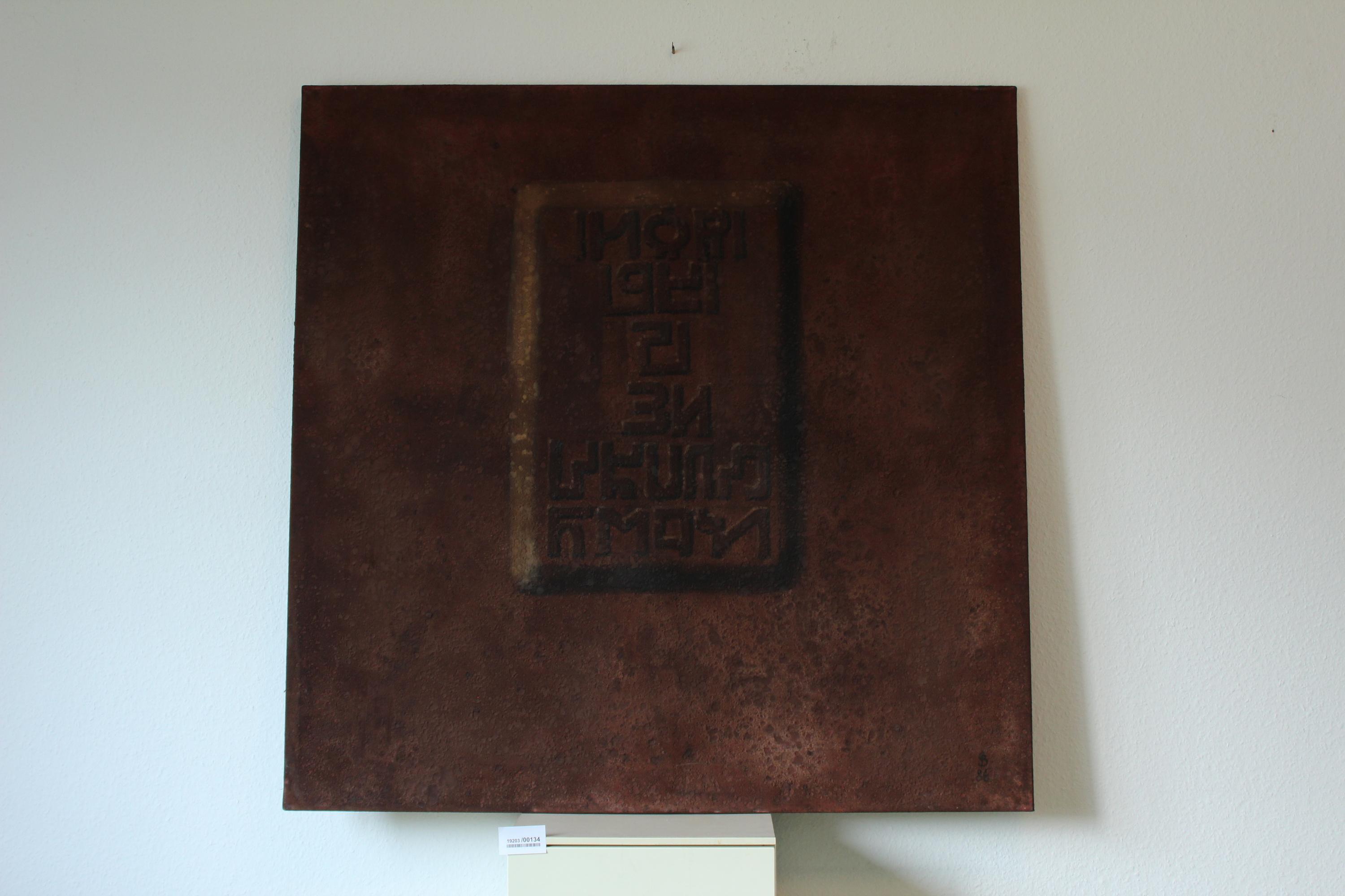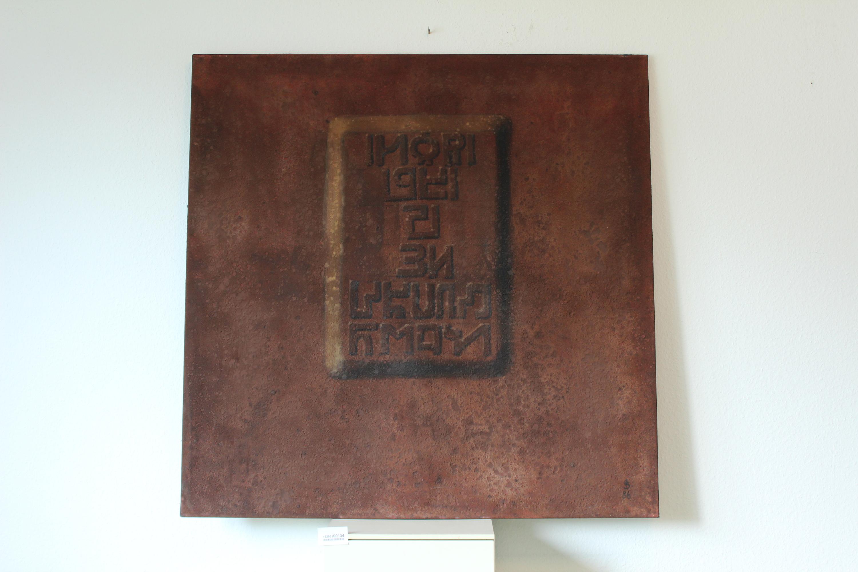 Tempera, Sand und Öl auf Leinwand