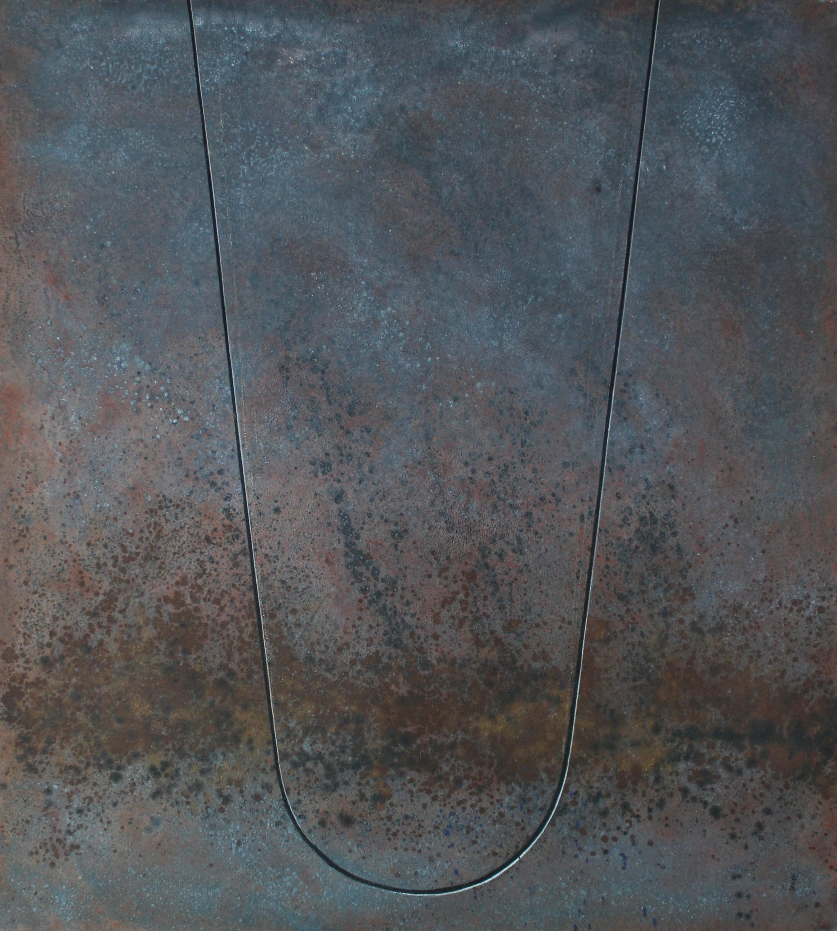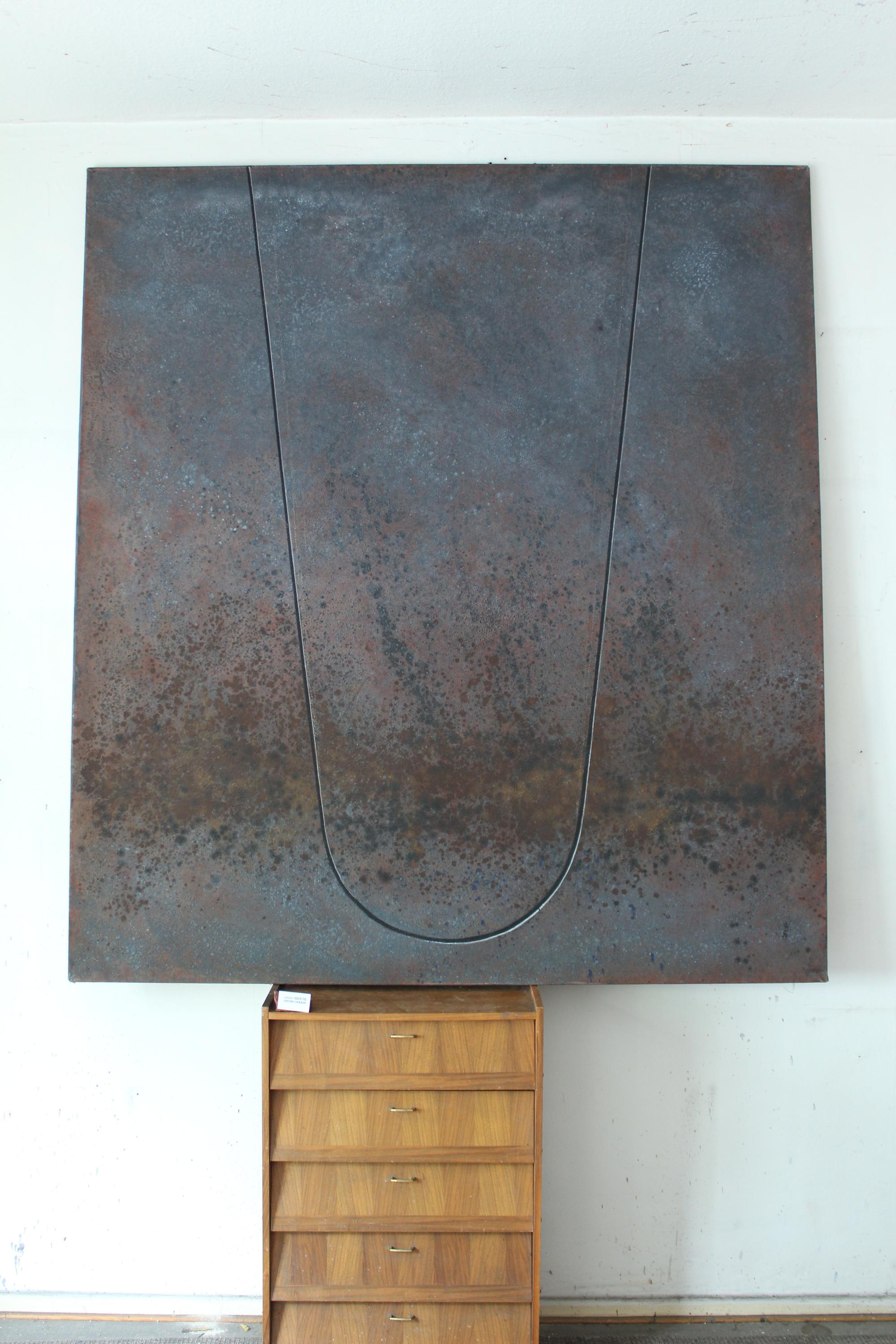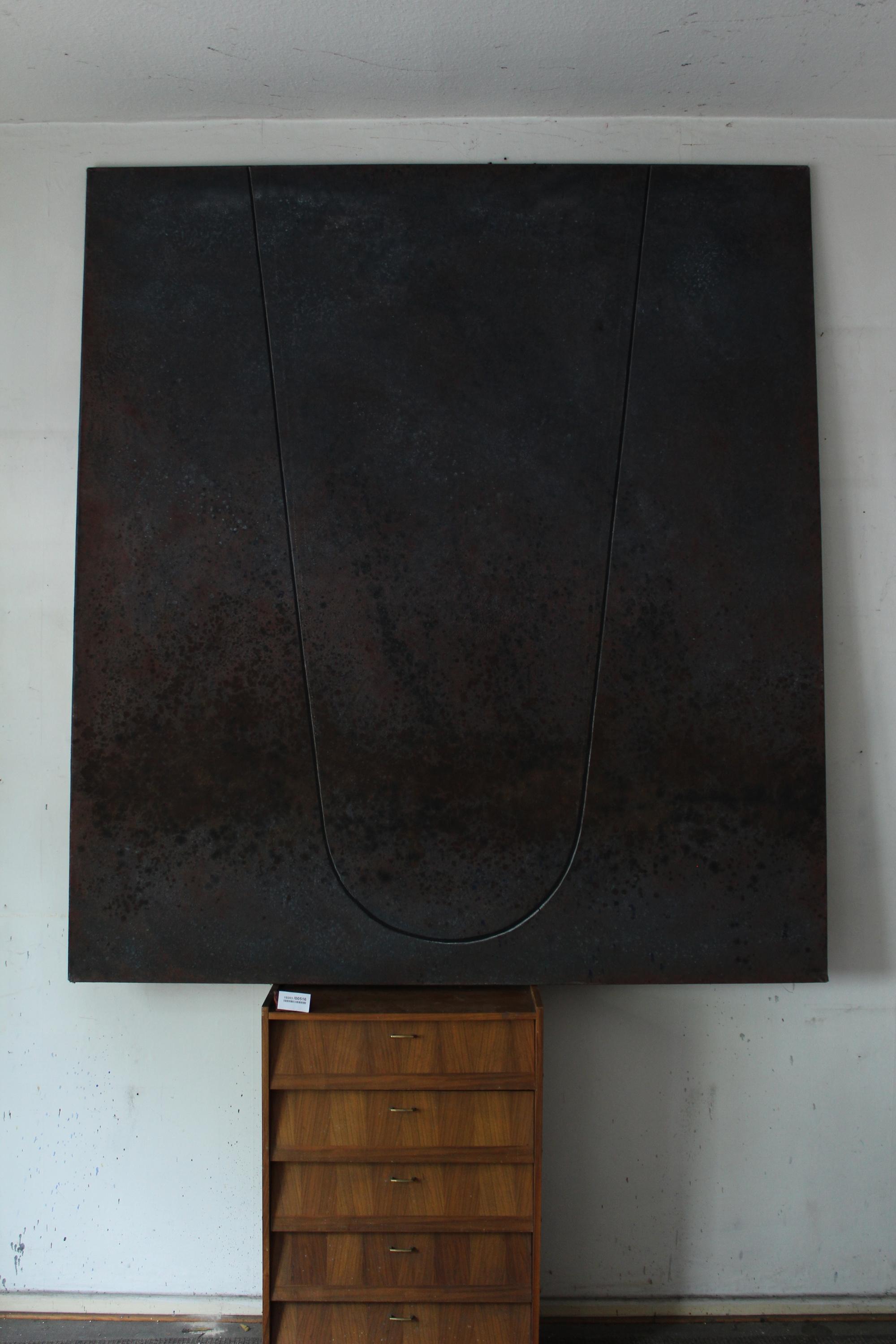 Tempera, Sand und Öl auf Leinwand